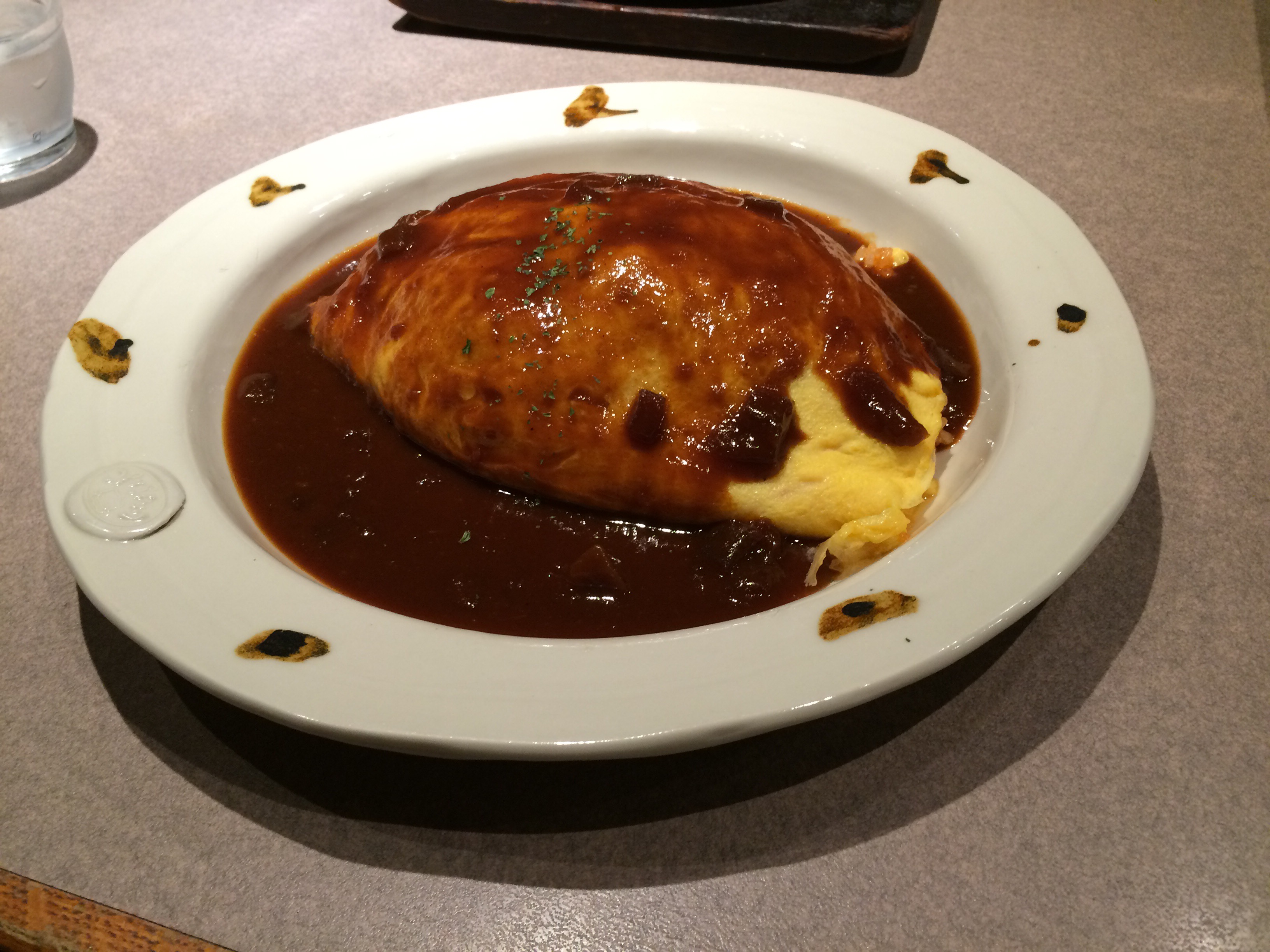 老舗のデニオムとシーフードトマトドリアを注文。